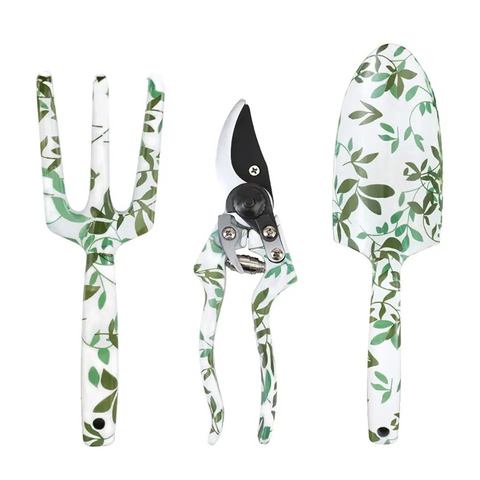 El nuevo listado de impresión de hojas pala tenedor conjunto de acero inoxidable floricultura plantación herramientas de jardinería 3 juegos