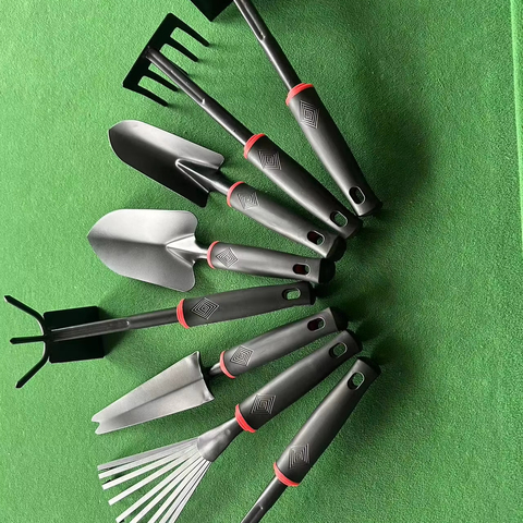 Juego de herramientas de jardín multifuncional de fábrica de 9 piezas, mango de madera de acero inoxidable, kit de jardinería para trasplante de deshierbe